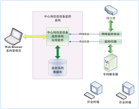 利用中心局信息设备监管软件,可以形成覆盖整个邮区范围内的生产作业系统信息终端、网络的全网监控系统,从而使得中心局设备信息管理人员及时准确掌握设备运行状态,提高信息设备安全管理能力,保障中心局生产系统的稳定运行。