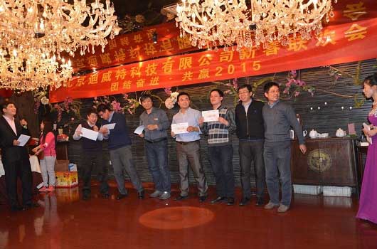 2015年1月30日,以“团结奋进·共赢2015 ”为主题的北京迪威特科技有限公司迎春年会在北京市海淀区中关村“醉爱时尚餐厅”隆重举行。此次年会采用的是年度总结表彰与用餐娱乐相结合的形式。北京迪威特科技有限公司董事长、总经理、各部门领导以及全体员工共计100多人参加。
